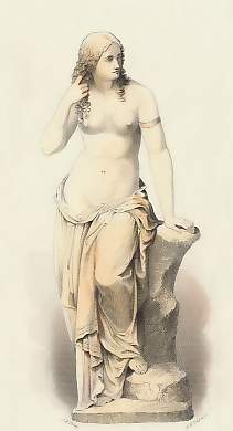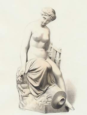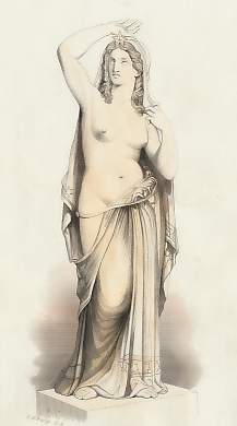 Mythology. Original steel engraving, engraved by W. French after J. Pradier. ca 1850. Very good condition. Hand-coloured. 22x12cm. Matted.
