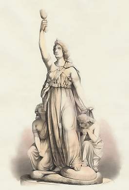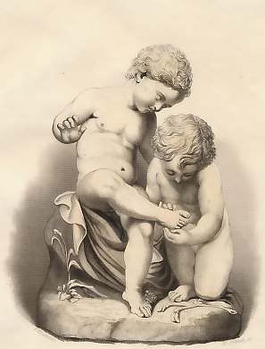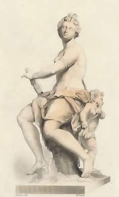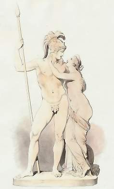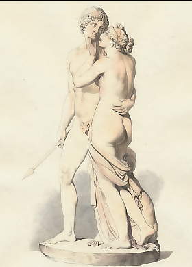 Mythology. Original steel engraving, engraved by A. H. Payne after Antonio Canova. ca 1850. Very good condition. Hand-coloured. 19x11cm. Matted.