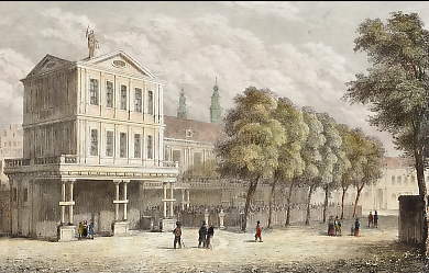 Die Bürger Artillerie Wache und das Denkmal Professor Büsch zu Ehren auf dem Walle in der Bastion Vincent, 1826.