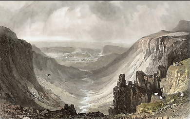 England. Original steel engraving drawn by W. Westall, engraved by E. Francis. 1829. Very good condition. Hand-coloured. 14,5x9cm. Matted.