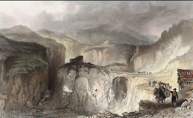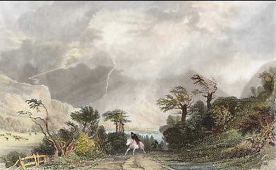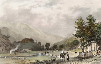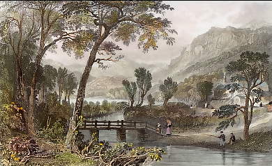 England. Original steel engraving drawn by W. Westall, engraved by E. Finden. 1829. Very good condition. Hand-coloured. 15x9cm. Matted.