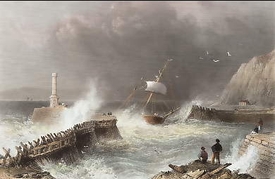 Maritime. Original steel engraving drawn by S. Austin, engraved by R. Brandard. 1832. Good condition. Modern hand-colouring. 15x9,5cm. Matted.