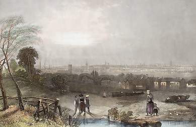 England. Original steel engraving, engraved by W. Le Petit after T. Allom. 1832. Good condition, small spot in the link margin. Hand-coloured. 15,5x9,5cm. Matted.