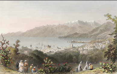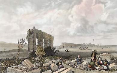 Lebanon. Original aquatint, engraved by A. Sasso. 1824. Good condition. Original hand-colouring. 18x11cm. Matted.