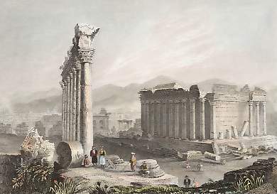Lebanon. Original lithograph nach David Roberts. 1887. Good condition, small paper defect under the title. Hand-coloured. 23x15cm. Matted.