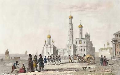 Russia. Original steel engraving, engraved by Lejeune after Danvin. 1838. Very good condition. Hand-coloured. 14x9cm. Matted.