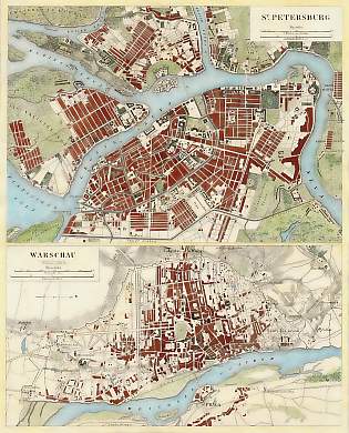 Russia. Original city map on steel engraved by J. Mädel after G. Heck. 1849. Good condition, light foxing in the margins. Hand-coloured. 25,5x20,5cm. Matted.