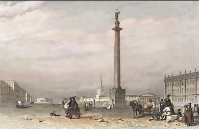 Russia. Original steel engraving, engraved by W. Chevalier after A. G. Vickers. 1835. Very good condition. Hand-coloured. 14x9,5cm. Matted.