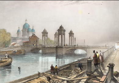 Russia. Original steel engraving drawn by A. G. Vickers, engraved by J. T. Willmore. 1835. Very good condition. Hand-coloured. 14,5x9,5cm. Matted.