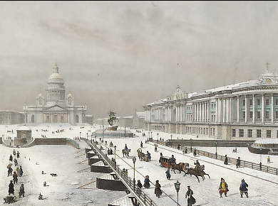 Russia. Original aquatinta, engraved by A. Bernieri. 1825. Good condition. Original hand-colouring. 14,5x9,5cm. Matted.