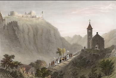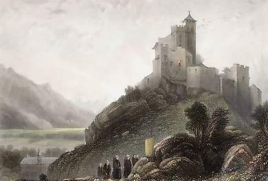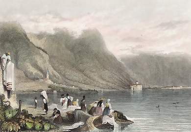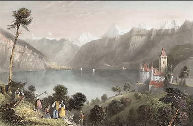 Switzerland. Original steel engraving drawn by W. Bartlett, engraved by W. R. Smith. 1836. Very good condition. Modern hand-colouring. 17,5x11,5cm. Matted.