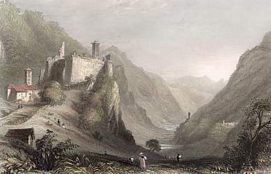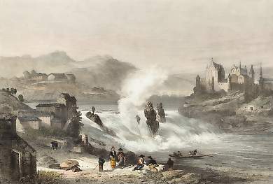 Switzerland. Original steel engraving drawn by S. Prout, engraved by J. B. Allen. 1844. Very good condition. Hand-coloured. 14,5x10cm. Matted.