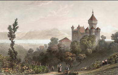 Switzerland. Original steel engraving drawn and engraved by A. and E. Rouargue. 1862. Light foxing in the margins. Original hand-colouring. 17x12cm. Matted.