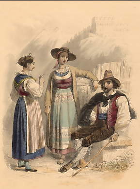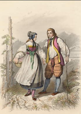 Switzerland. Original steel engraving drawn by Girard, engraved by Sears. 1858. Repaired tear in the margin. Hand-coloured. 17x10,5cm. Matted.