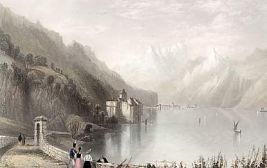Switzerland. Original steel engraving, engraved by W. Hill after W. H. Bartlett. 1837. Slightly soiled in the lower margin. Hand-coloured. 18x11,5cm. Matted.