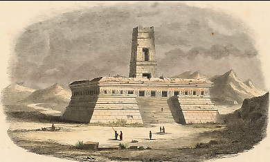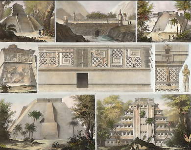 1. Bridge in the District of Tlascala, 2. Temple at Xochicalco, 3. Pyramid of Teotihuacan, 4. House of the Ruler in Yucatan, 5ab. Details from the Same, 6. Pyramid of Tuzapan, 7. Pyramid of Papantla, 8. Fragment from the Front of the Temple of the Two Serpents in Uxmal.
