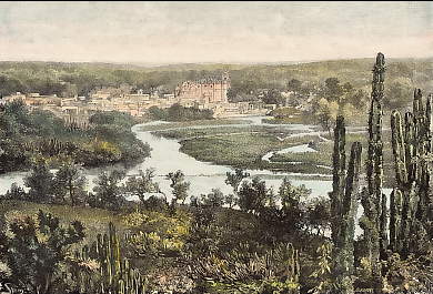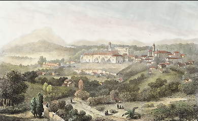 Mexico. Original steel engraving drawn by Guibert, engraved by Lechard. 1853. Very good condition. Modern hand-colouring. 14x10cm. Matted.