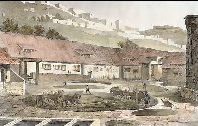 Mexico. Original aquatinta engraved by Verico. 1827. Good condition. Original hand-colouring. 18x10cm. Matted.
